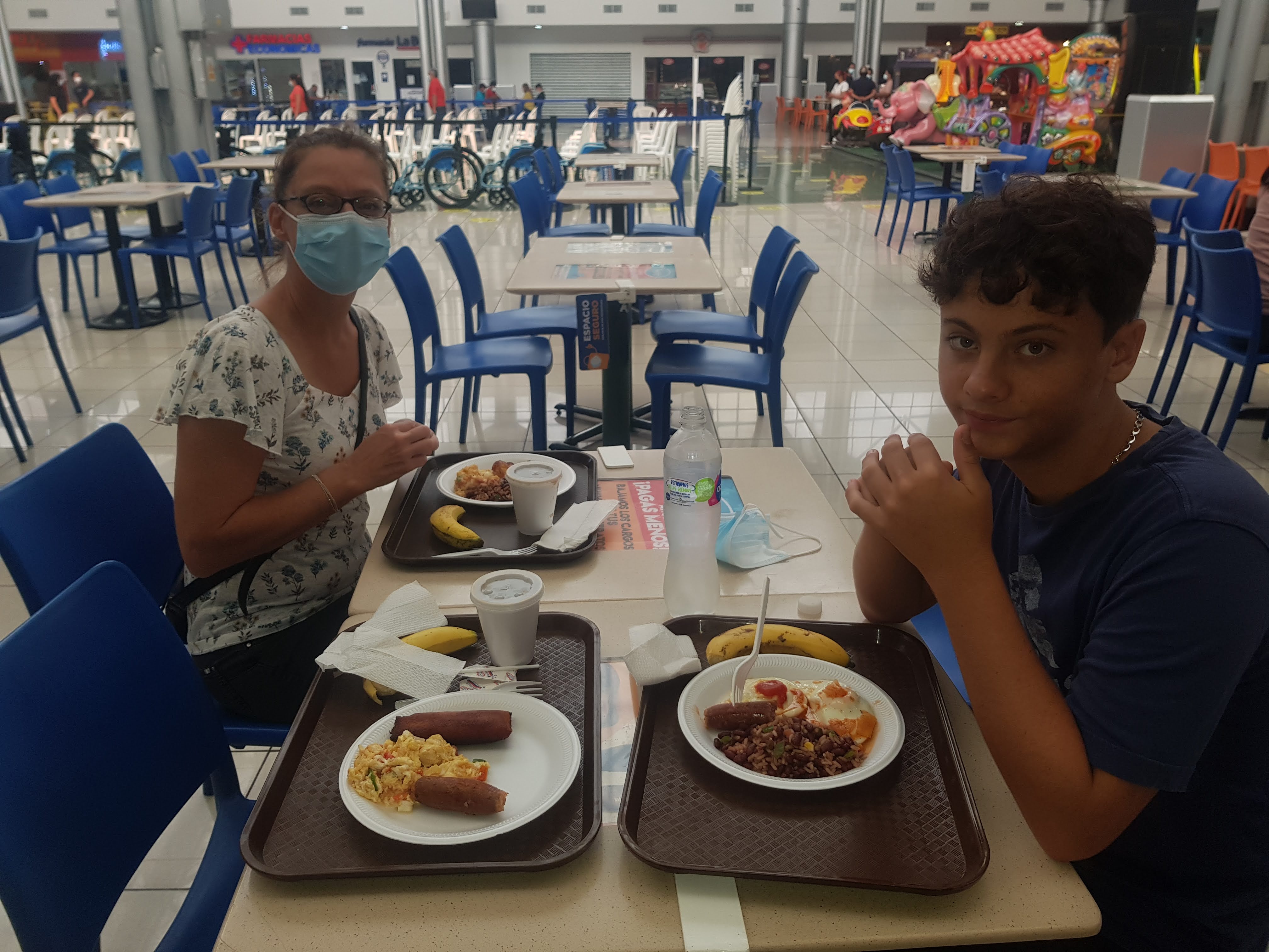 Premier matin nous sommes donc réveillés très tôt et on part à pied découvrir le pays, nous partons donc au grand centre commercial à 10mn de chez nous pour prendre un petit déjeuner.