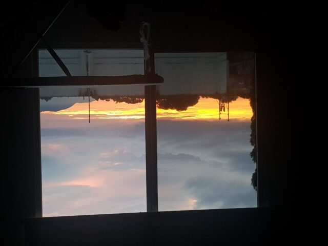 Au delà du décalage horaire (réveil à 3-4H les premières nuits) les débuts de journée pour tous sont vers 6H du matin. Voici la vue de notre lit au réveil à 5H30.