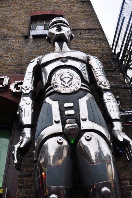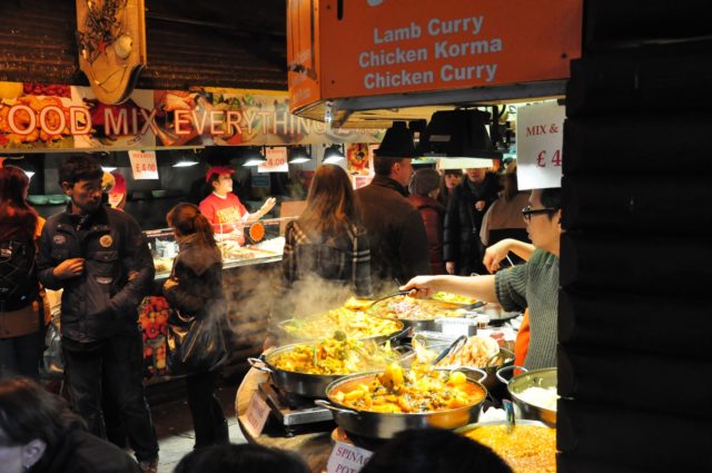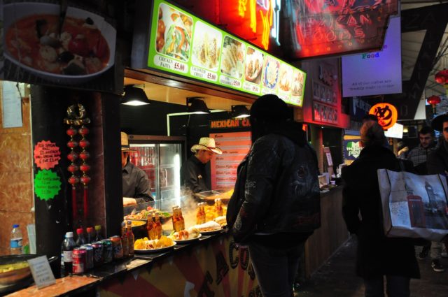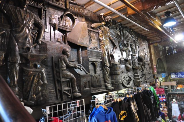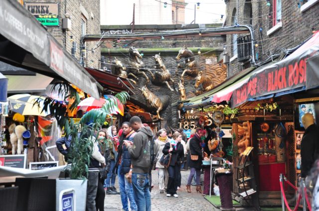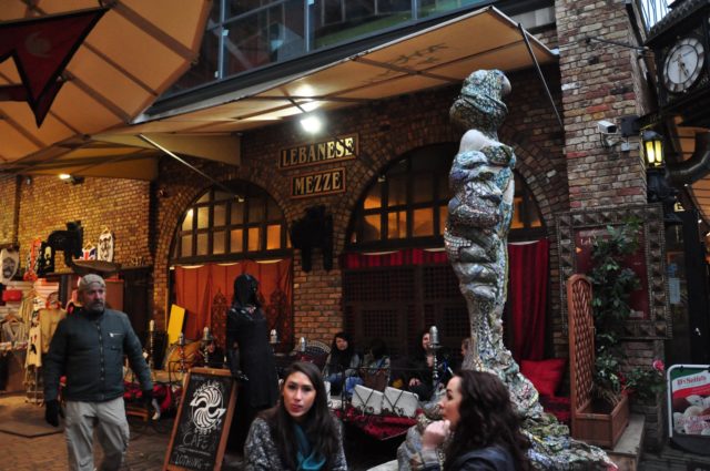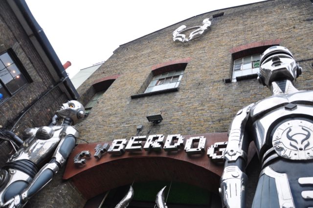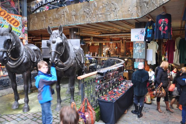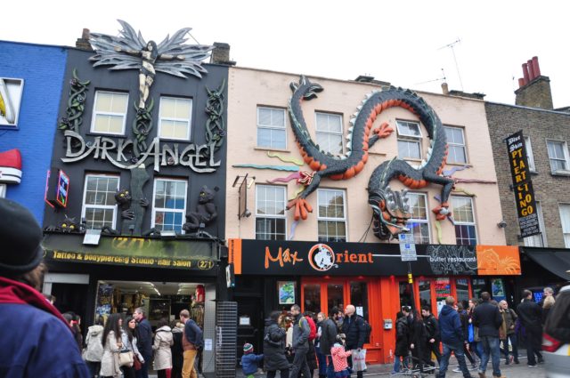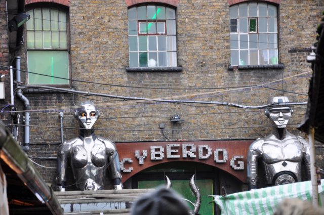 Voilà nous sommes à Londres chez nos cousins Anglais .Après une traversée sous le tunnel en train il a fallu prendre le volant et la fameuse conduite à gauche. Sur l’autoroute pour arriver à Londres ça allait mais en ville c’est bien plus compliqué. Comme nous arrivons un dimanche on va prendre le petit-déjeuner sur Colombus Road et son marché aux fleurs.Petit déjeuner Anglais au Royal OAKCap sur le Camden Market en TubeOn arrive au Camden c’est un peu fréquenté mais ça nous plaitDes boutiques originales et très BritishRepas Fish&Ships au Camden MarketLe CamdenAprès un marché un peu classique rempli de food stand on arrive par hasard au Cyverdog et on rentre dans sa gueuleTrop de gadgets sympas Robotiques Sex et … InutilesPlus on avance plus c’est WeirdAvant de nous engouffrer dans une grotte remplie de boutiques de mille sortesOn finit par ressortir pour parcourir une dernière allée du CamdenOn s’en est pris plein les yeux et c’est en flottant sur un petit nuage qu’on prend un Tube pour nous ramener à l’hôtel