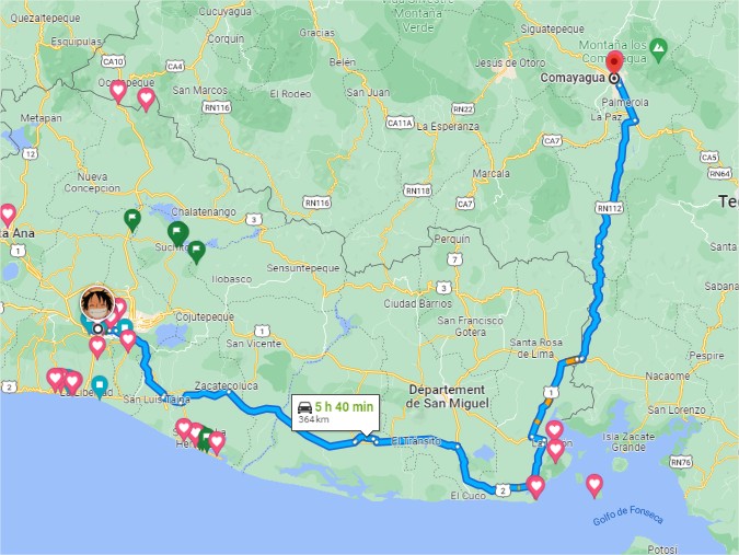 La frontière se passe sans difficulté et nous arrivons vers 13H après 6H de voyage à Comyagua au Honduras, la route après la frontière est somptueuse.