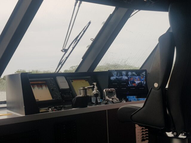 ça y est on embarque et comme c’était pas trop cher j’ai pris des billets de première qui nous placent à côté du pilote dans un espace climatisé.