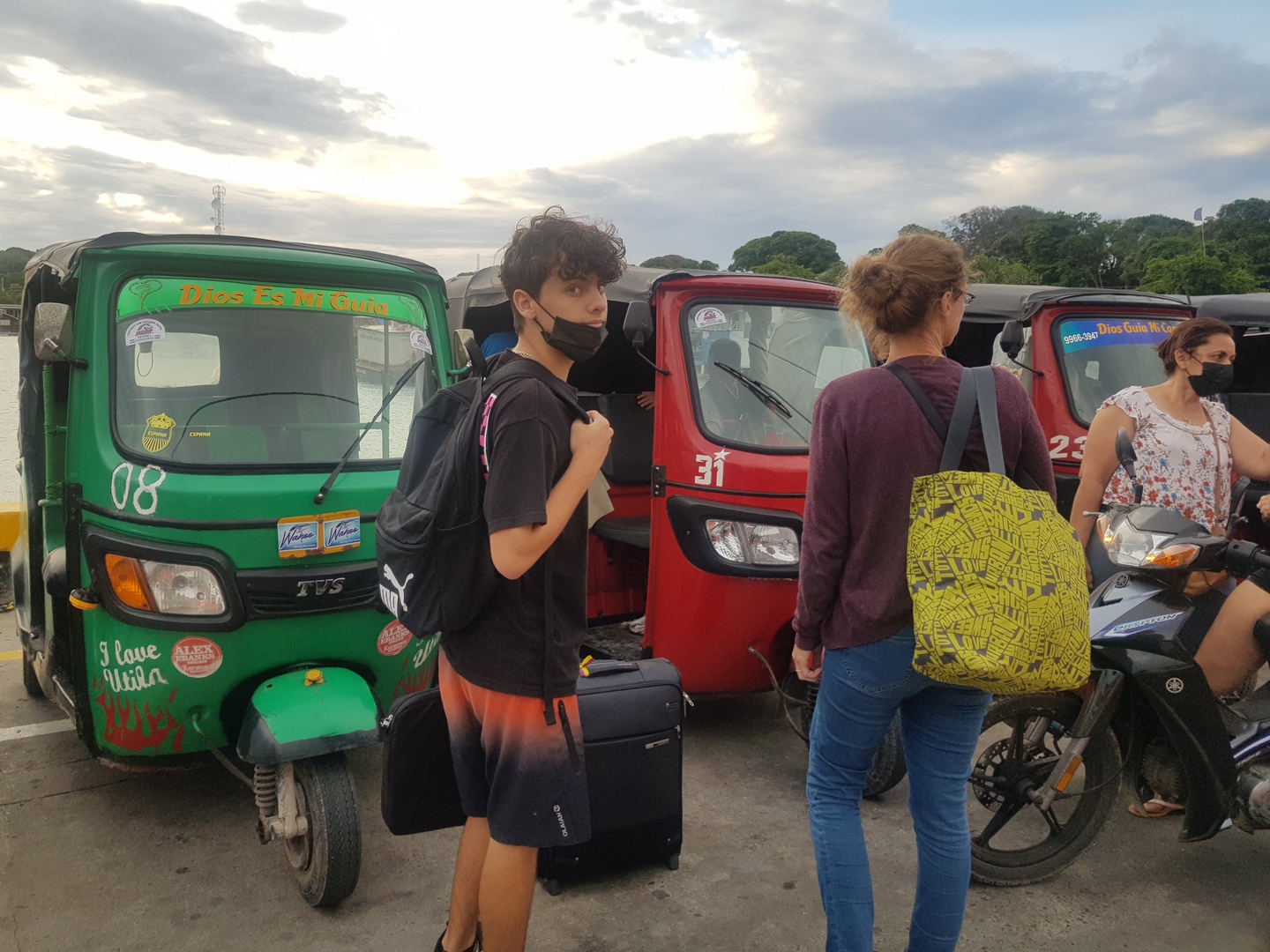 Finalement après 2H de traversée on arrive sur le petit port d’Utila où des tucs tucs nous attendent