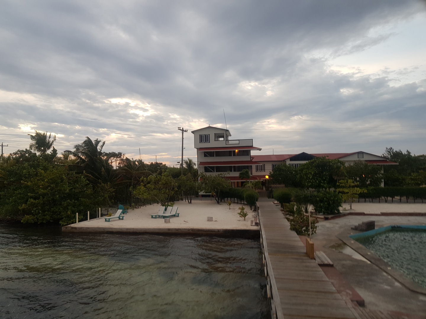 On arrive à l’hotel qui a l’air très chouette, les couleurs sont belles même si c’est la saison des pluies et il y a pas mal de nuages.