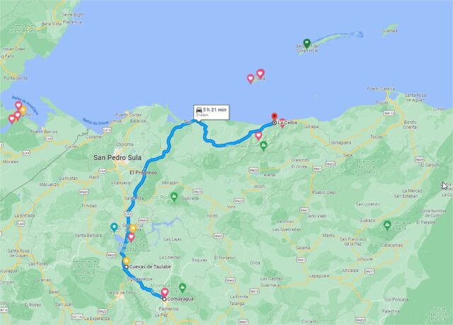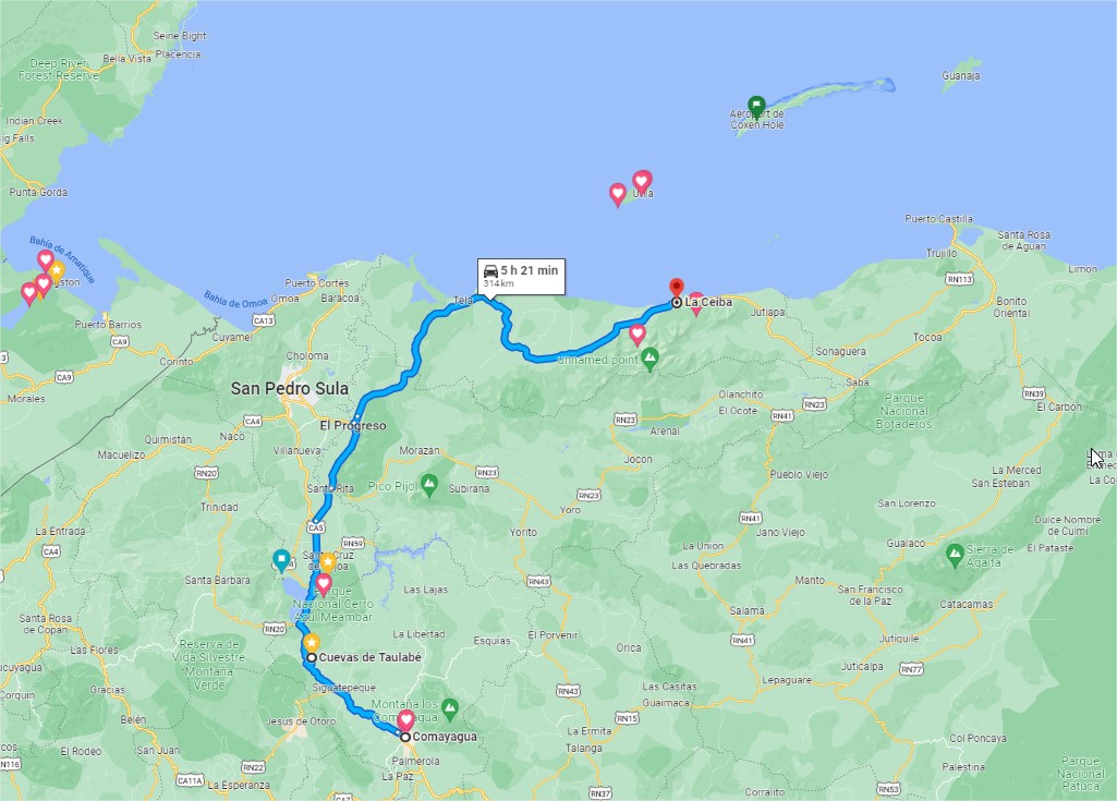 Et c’est parti pour la deuxième partie de notre voyage 5H20 voire 6H nous attendent pour atteindre La Ceiba au Nord du Honduras