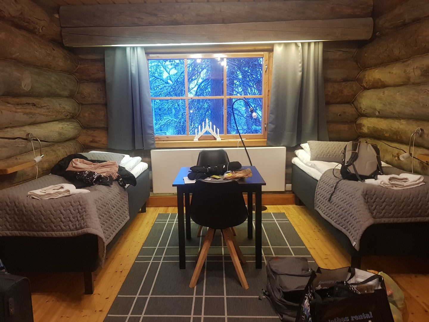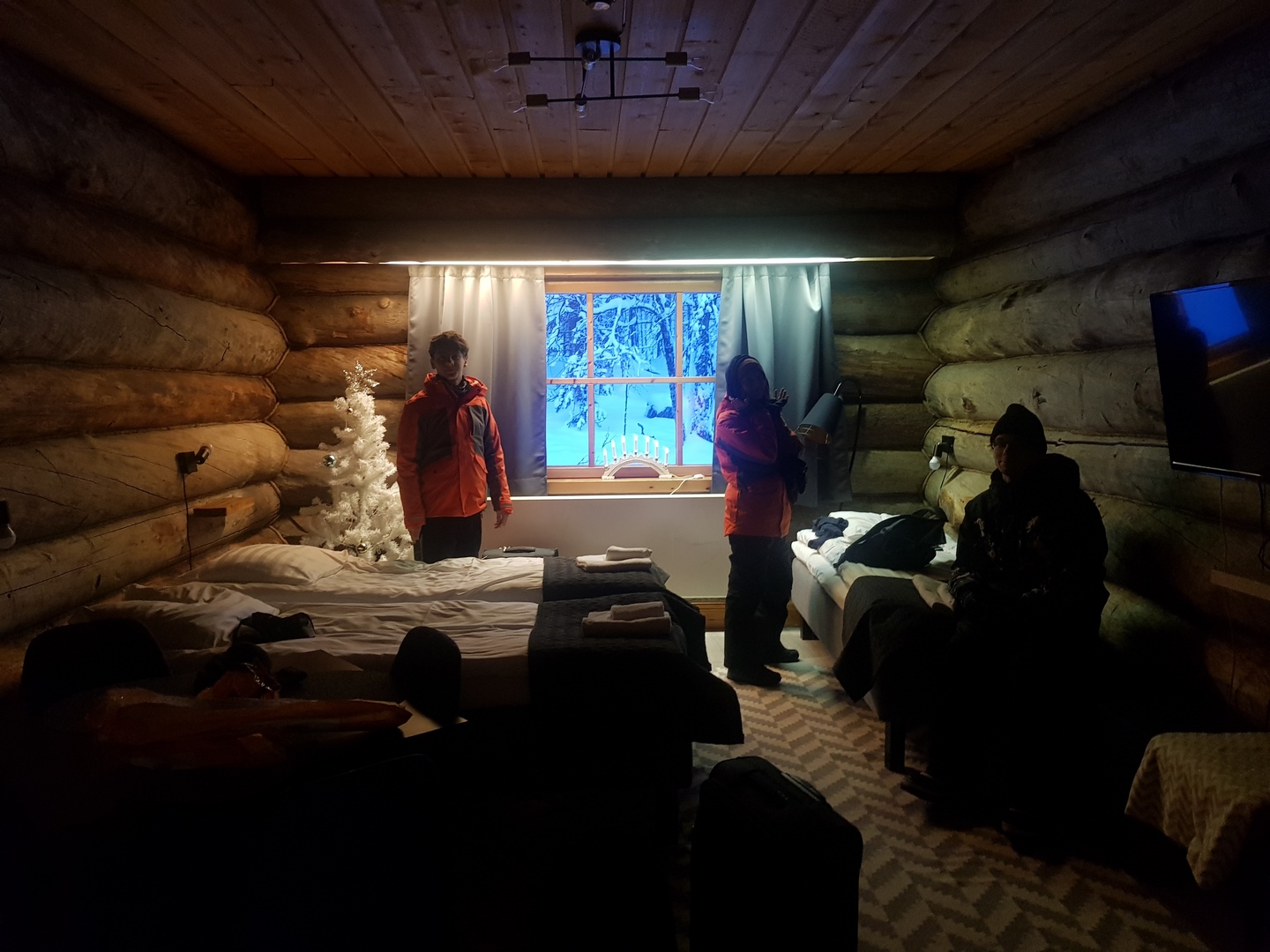 Nous arrivons à Saariselka vers 15H où il fait déjà nuit et trouvons un restaurant juste ouvert.
