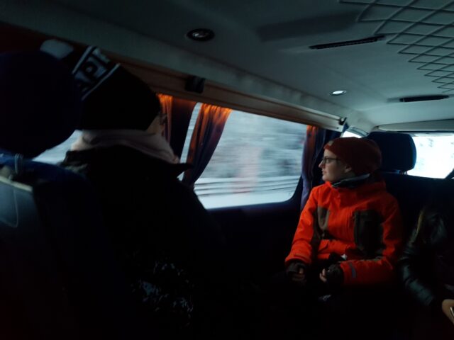 après avoir rendu les skis de fond on est pris en charge dans un Minibus qui nous emmène à la ferme des Rennes.