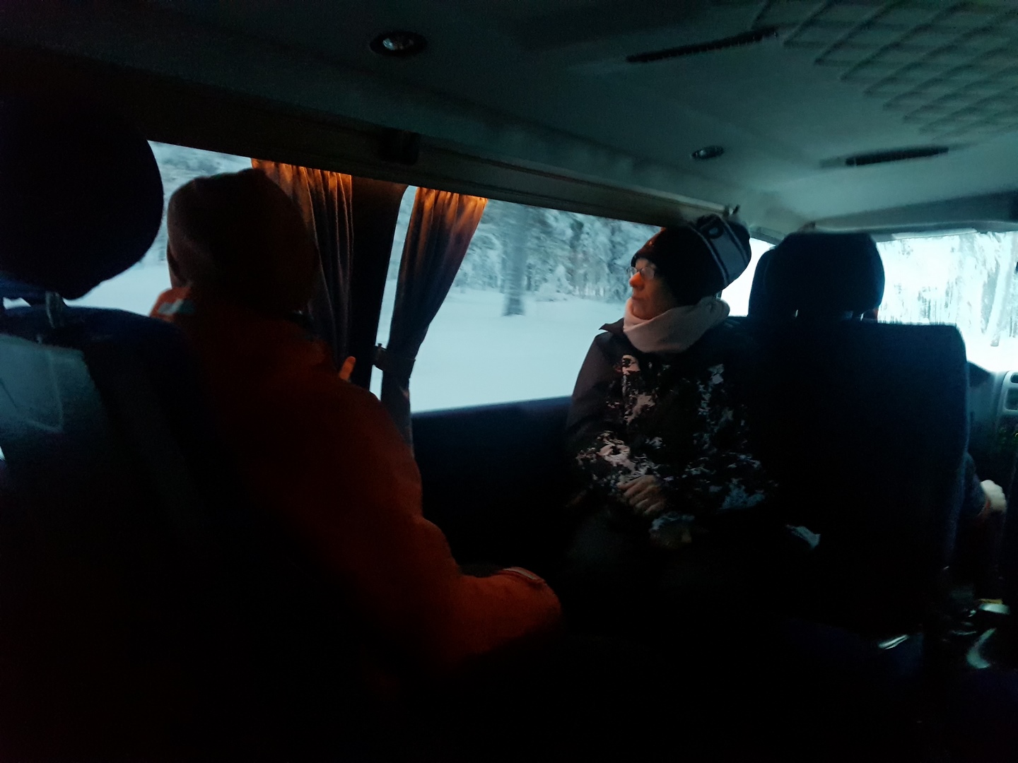 après avoir rendu les skis de fond on est pris en charge dans un Minibus qui nous emmène à la ferme des Rennes.