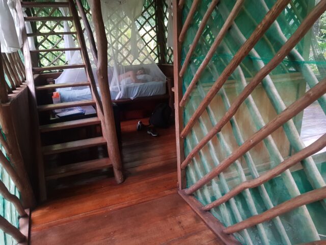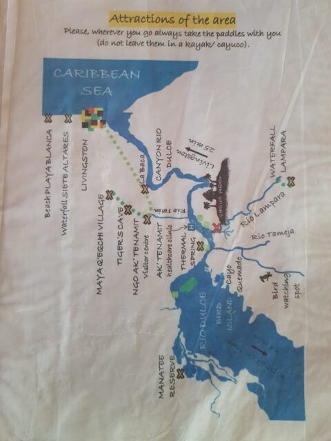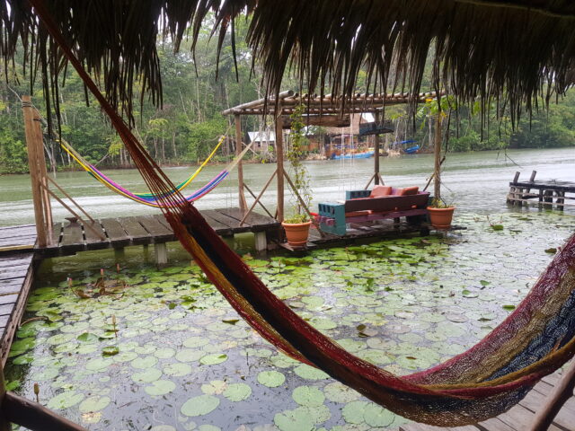 C’est une sorte d’auberge de jeunesse ou on retrouve pas mal de Back Papers, notre hutte est sur un marécage déversement du Rio Dulce et il vaut mieux avoir de bonnes moustiquaires.