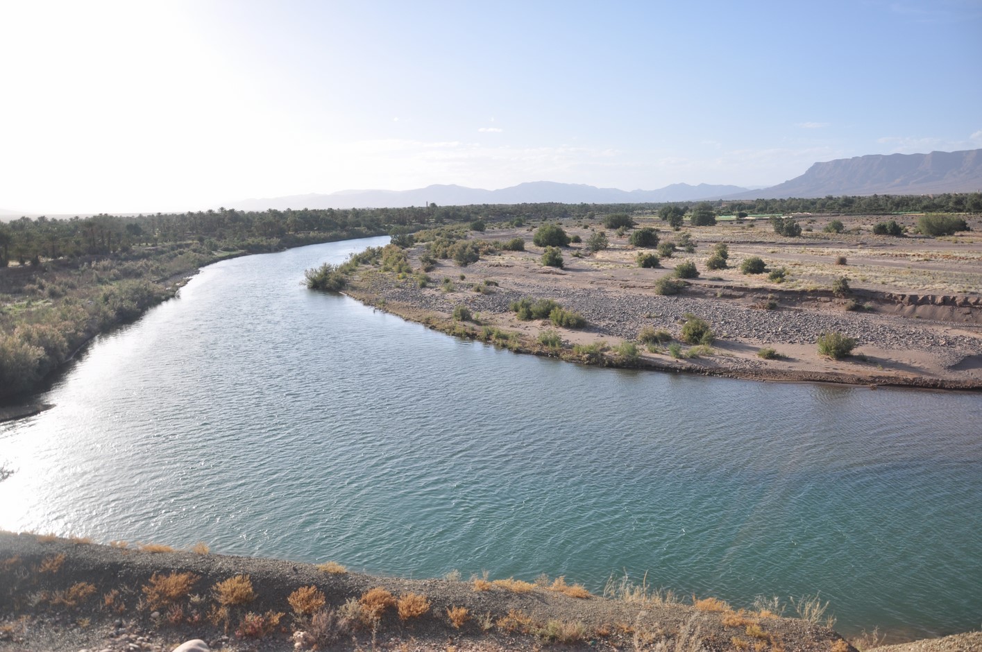 Arrivée sur le Draa on cherche un coin pour manger et trouvons un petit paradis pas loin de la route mais pas trop près non plus.