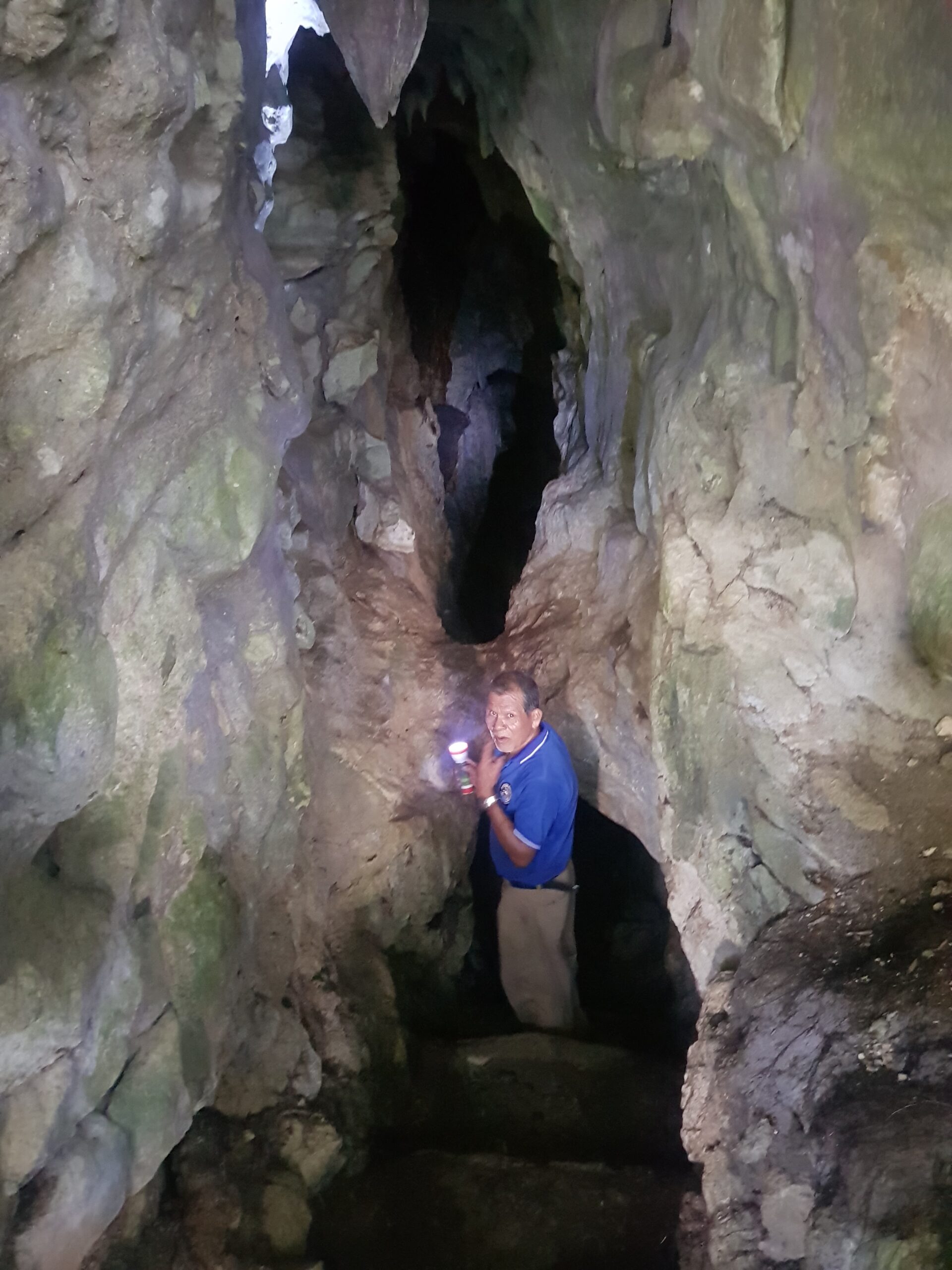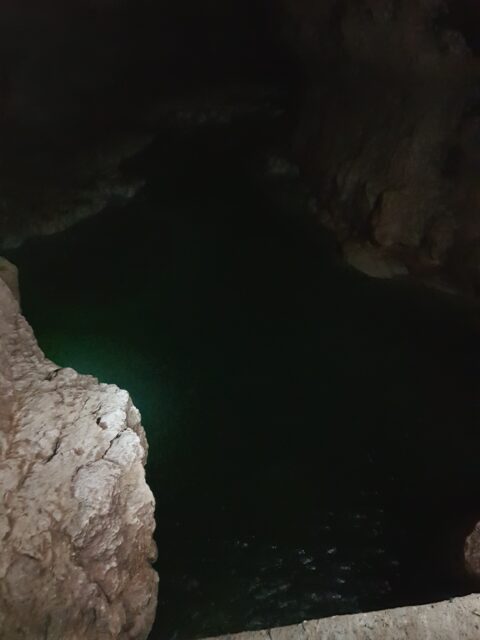 Nous arrivons à la grotte du tigre mais il fait complètement noir et on doit sauter dans un trou entre 3 et 5m de profondeur