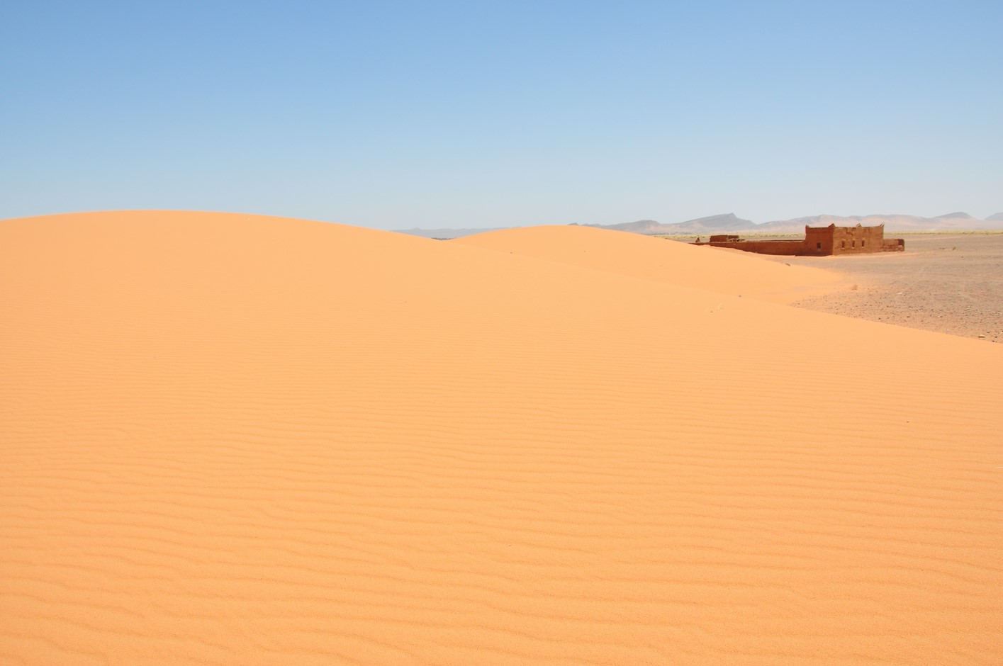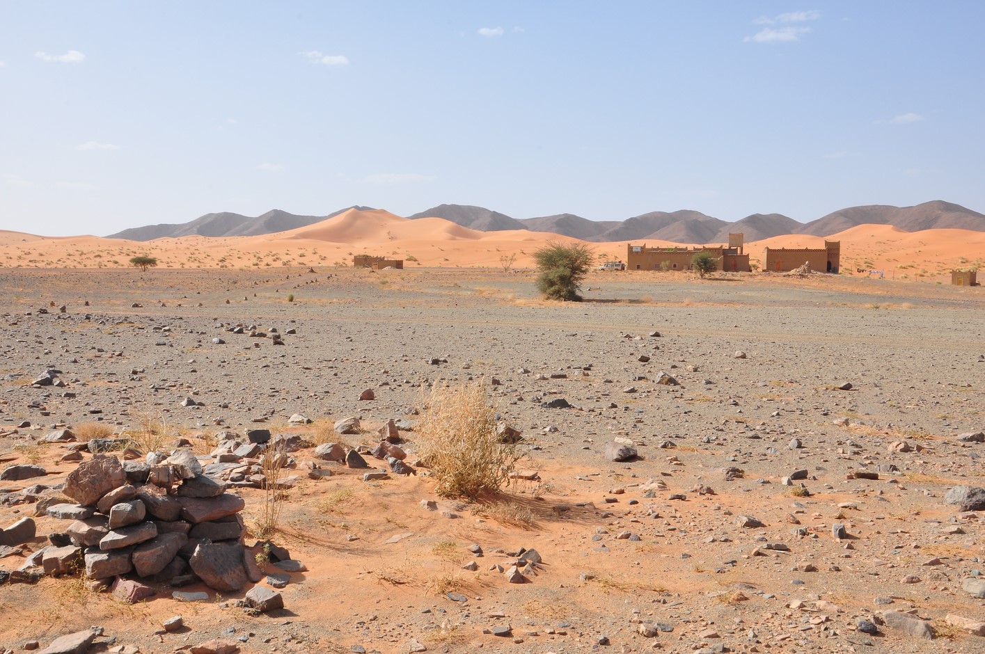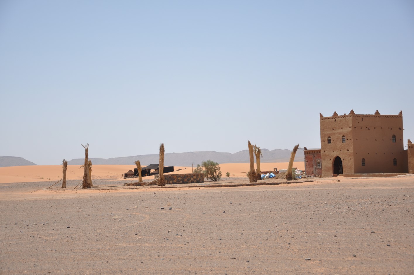 Vers 18H30 nous arriveront enfin à Taouz et faute d’hébergement correct poursuivrons jusqu’à Merzouga en s’arrêtant au premier hôtel piscine sur la route : »La porte du désert »