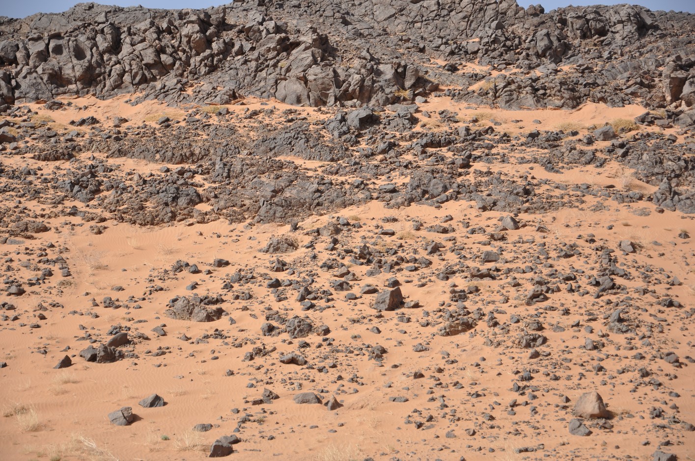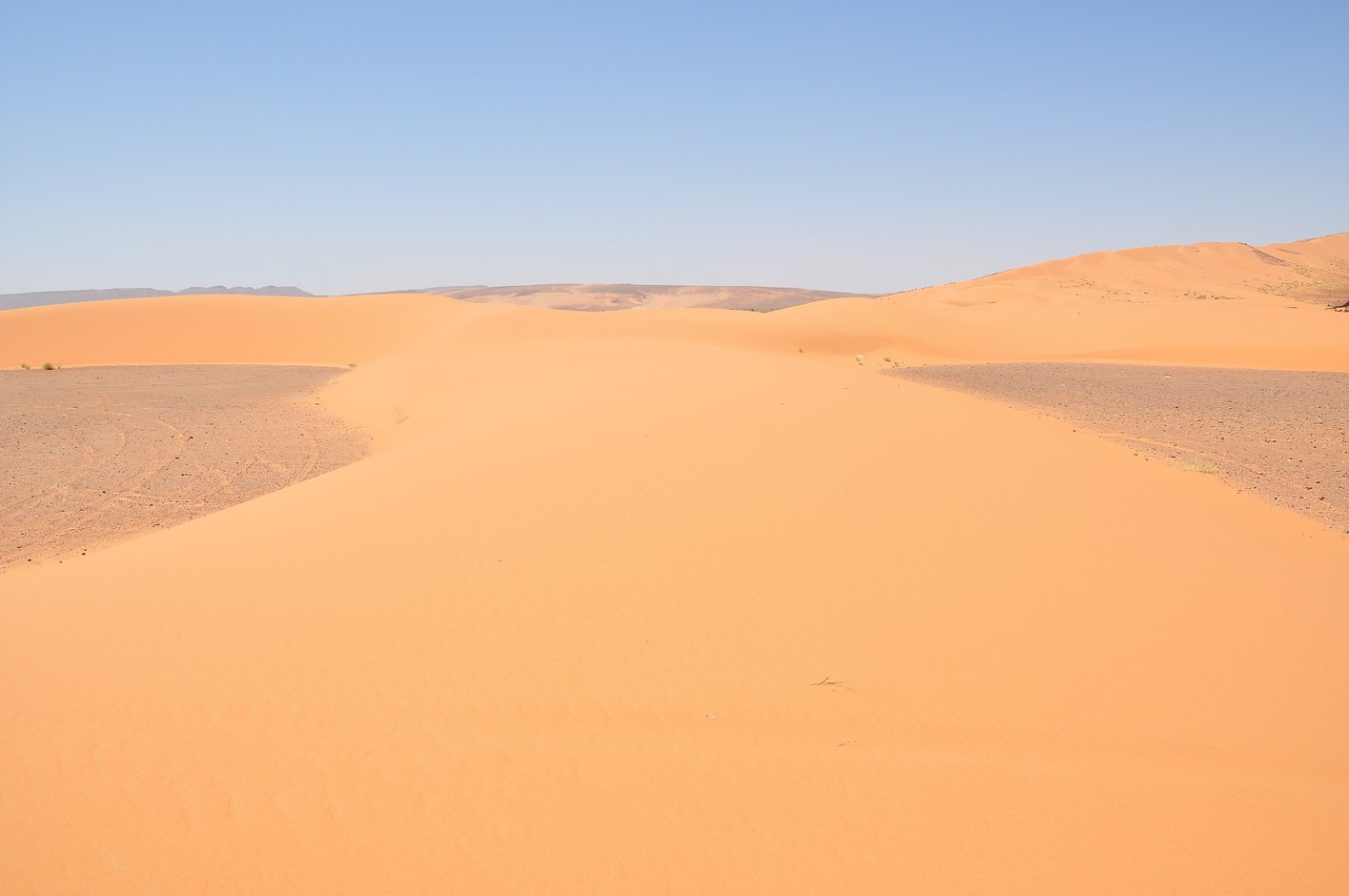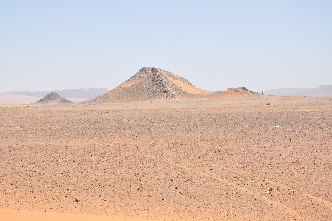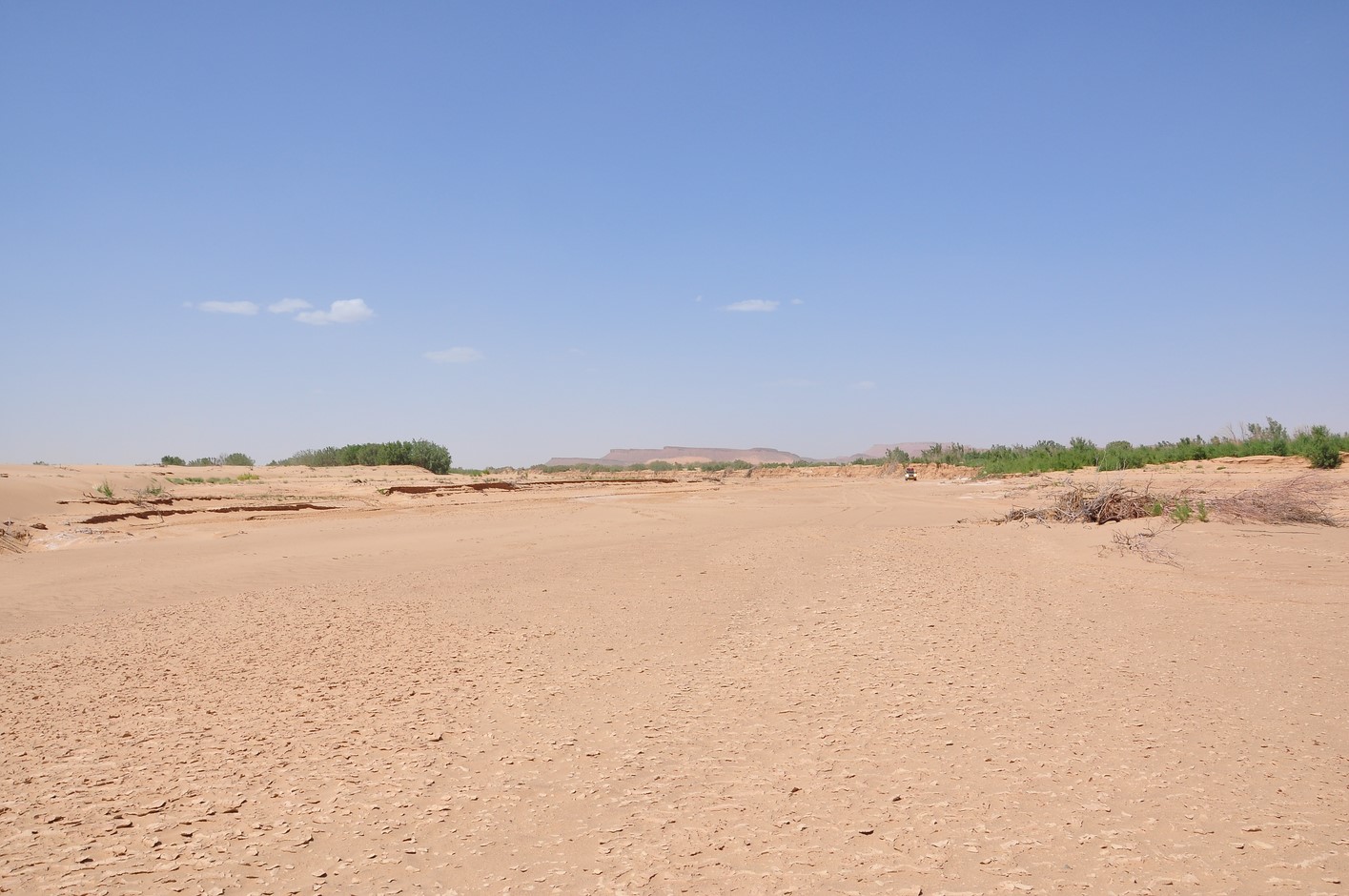 La route reprend toujours aussi belle, on atteint une petite difficulté dans un Oued à sec très sablonneux je me trompe de route et nous devons faire demi tour après 400m dans du sable tout mou, finalement sans dégonfler on ne s’ensablera pas et reprendrons la route.