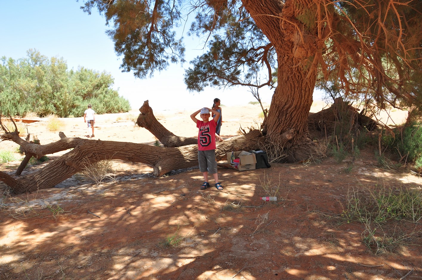 Pour la pause du repas nous faisons confiance au couple Serre qui trouve un endroit parfait à l’ombre d’un gros arbre sans trop de mouches et qui reste agréable malgré un vent chaud très puissant nous fouettant le visage.