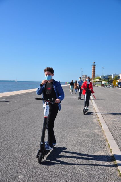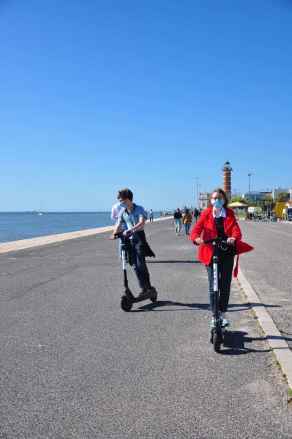 Comme l’esplanade est un peu longue nous louons 5 trottinettes électriques. C’est très chouette et rapide toute la famille est contente