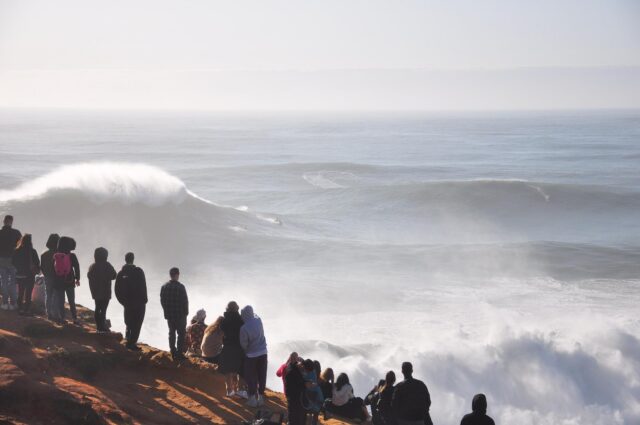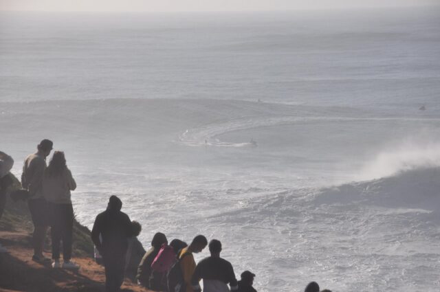 L’arrivée à Nazare est compliquée car la publicité autour de la journée a attiré de très nombreux spectateurs et le passage en voiture est tout simplement bloqué, donc nous continuerons à pieds avant de se faire bloquer l’accès au phare par la police.