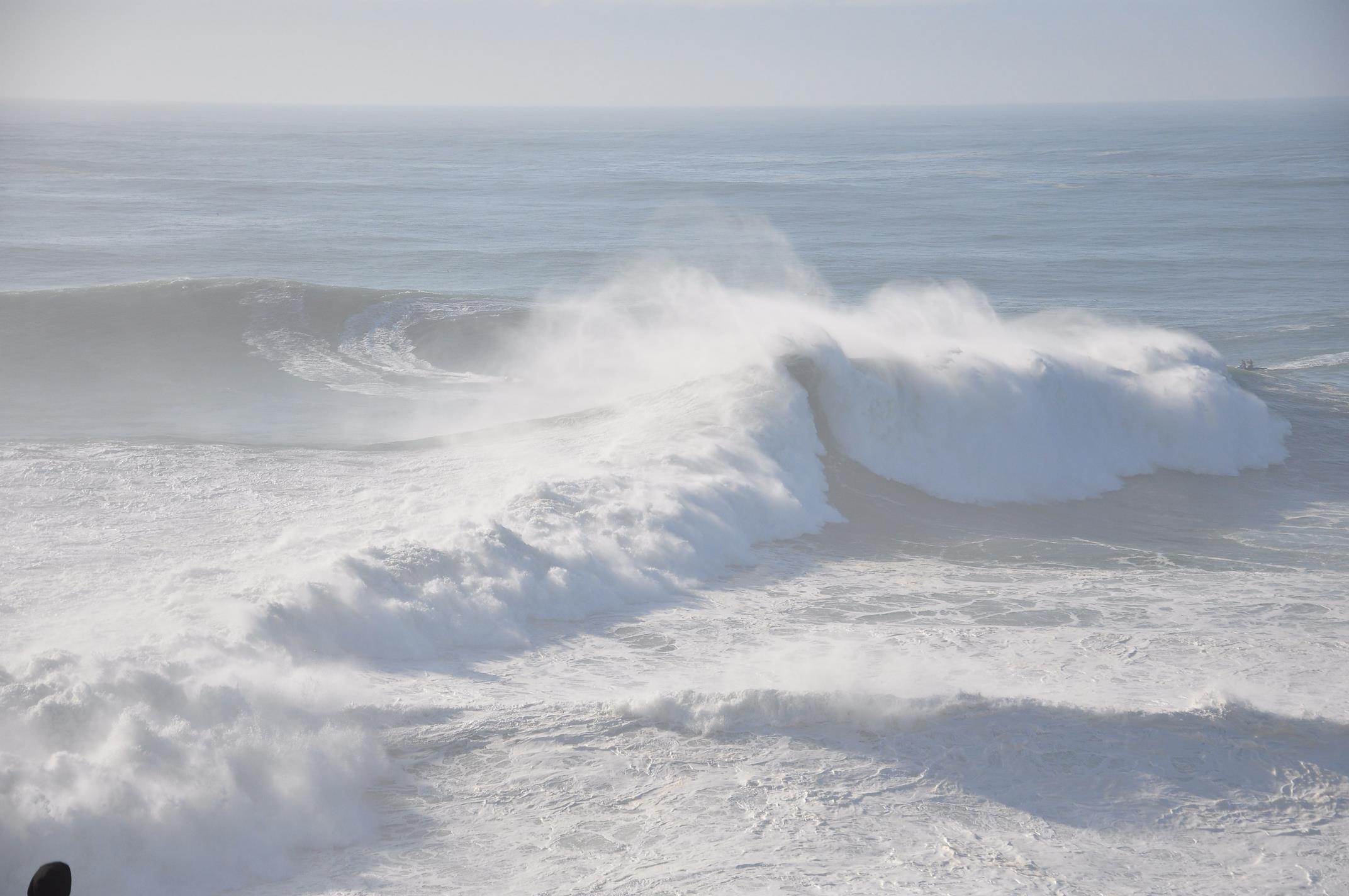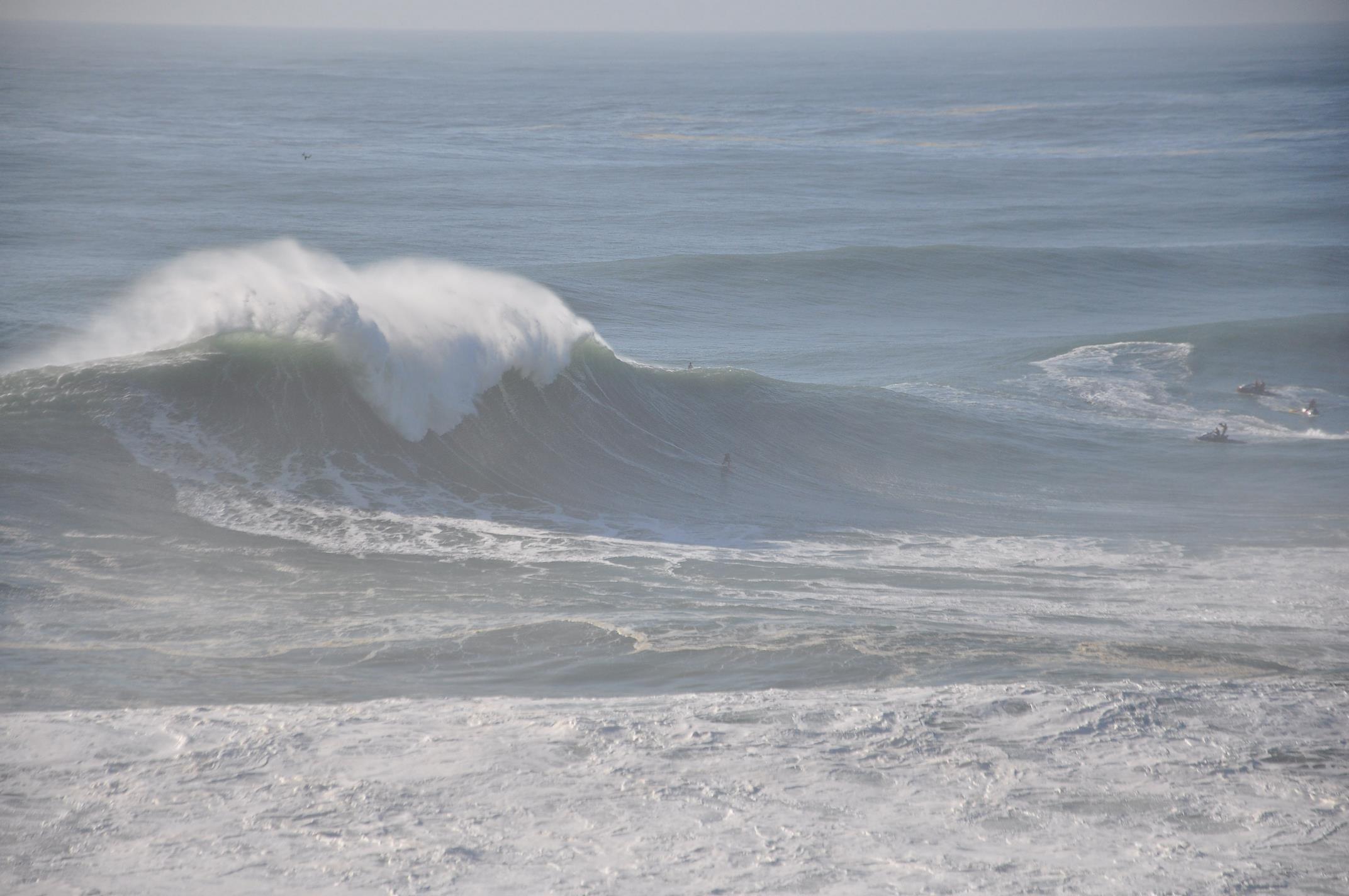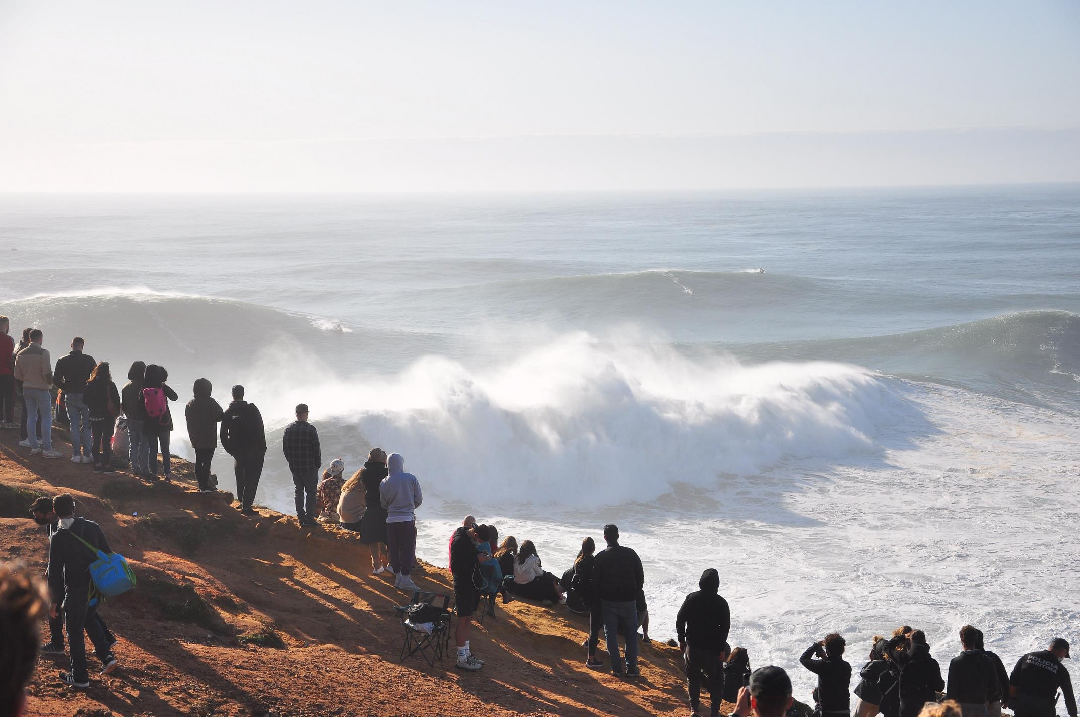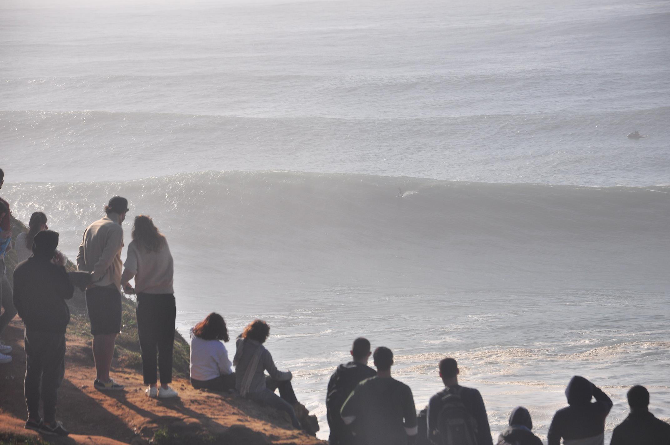 L’arrivée à Nazare est compliquée car la publicité autour de la journée a attiré de très nombreux spectateurs et le passage en voiture est tout simplement bloqué, donc nous continuerons à pieds avant de se faire bloquer l’accès au phare par la police.