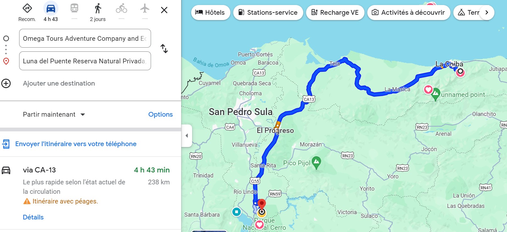 J7 Route et nuit à Luna del Puente Reserva Natural Privada