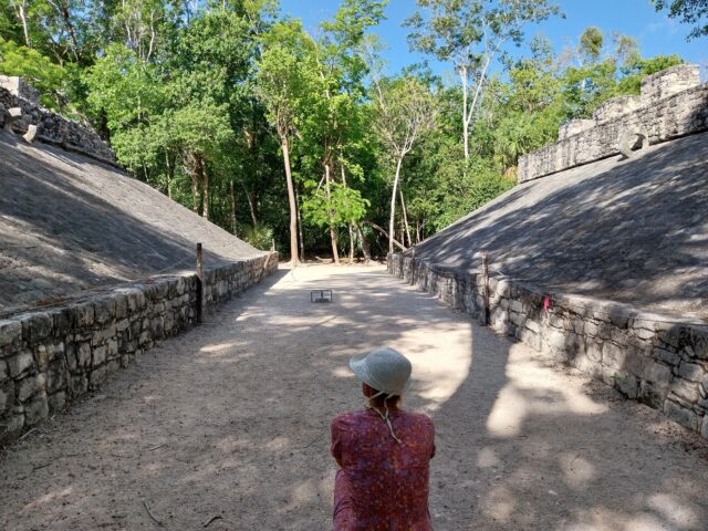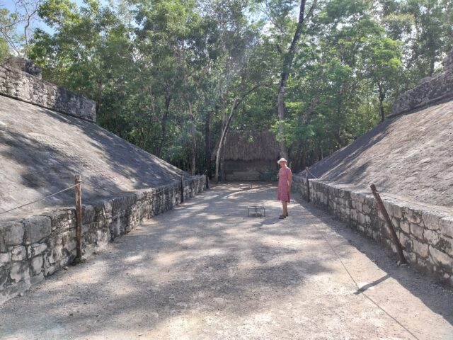 La ballade est très sympa et sous les arbres et le site est joli avec de chouettes pyramides et des terrains de jeux de paumes.