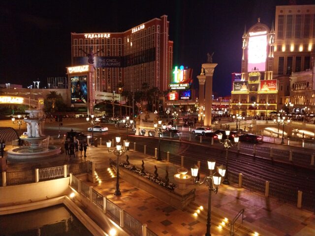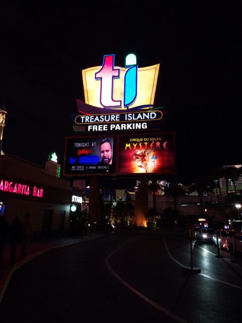 Et nous arrivons à notre hôtel Treasure Island qui est directement sur le STRIP de Las Vegas la grande avenue où l’on trouve les casinos les plus connus