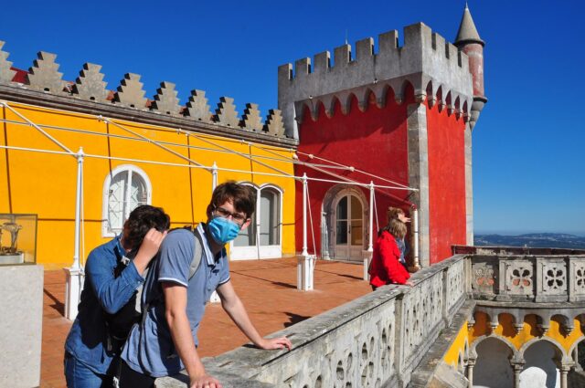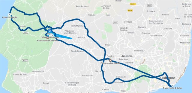 Nous partons ensuite à Sintra où l’accueil est digne de Dakar, de nombreux arnaqueurs essaient de nous vendre des tours à prix exhorbitants et c’est désagréable, la police nous dit qu’il est interdit de monter au château de PENA en voiture.