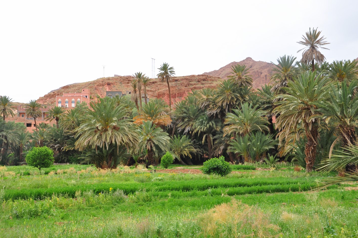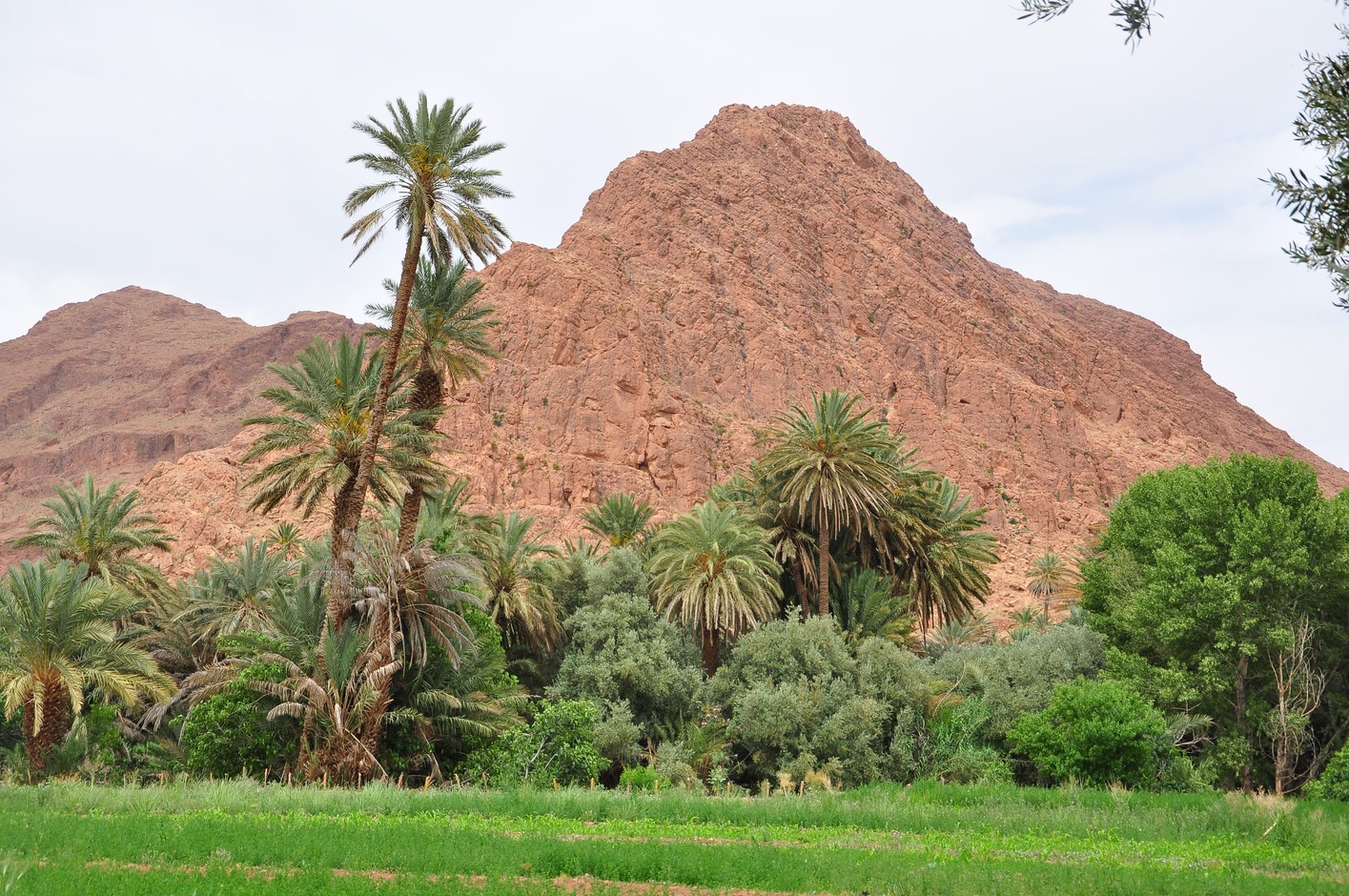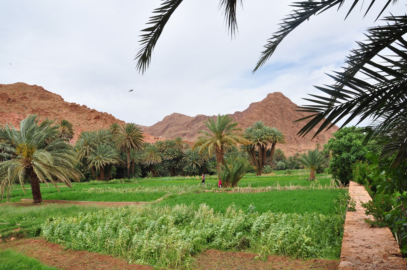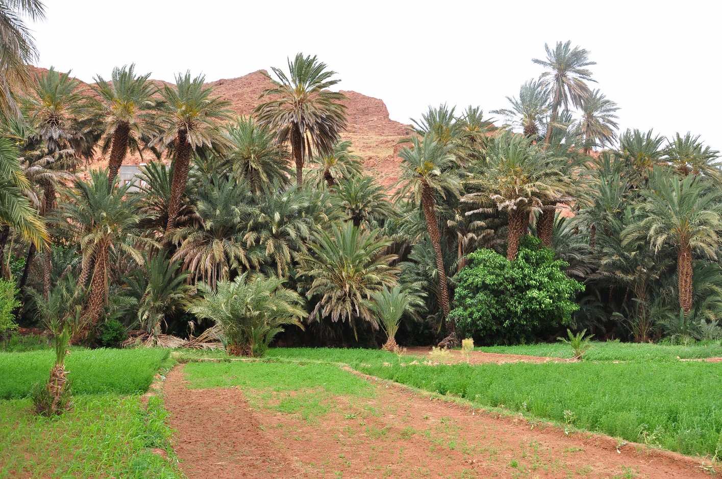 Puis ballade à pieds dans la palmeraie ; c’est très verdoyant et la multitude de palmiers est très photogénique.