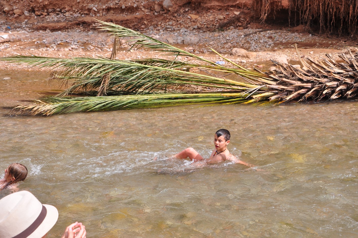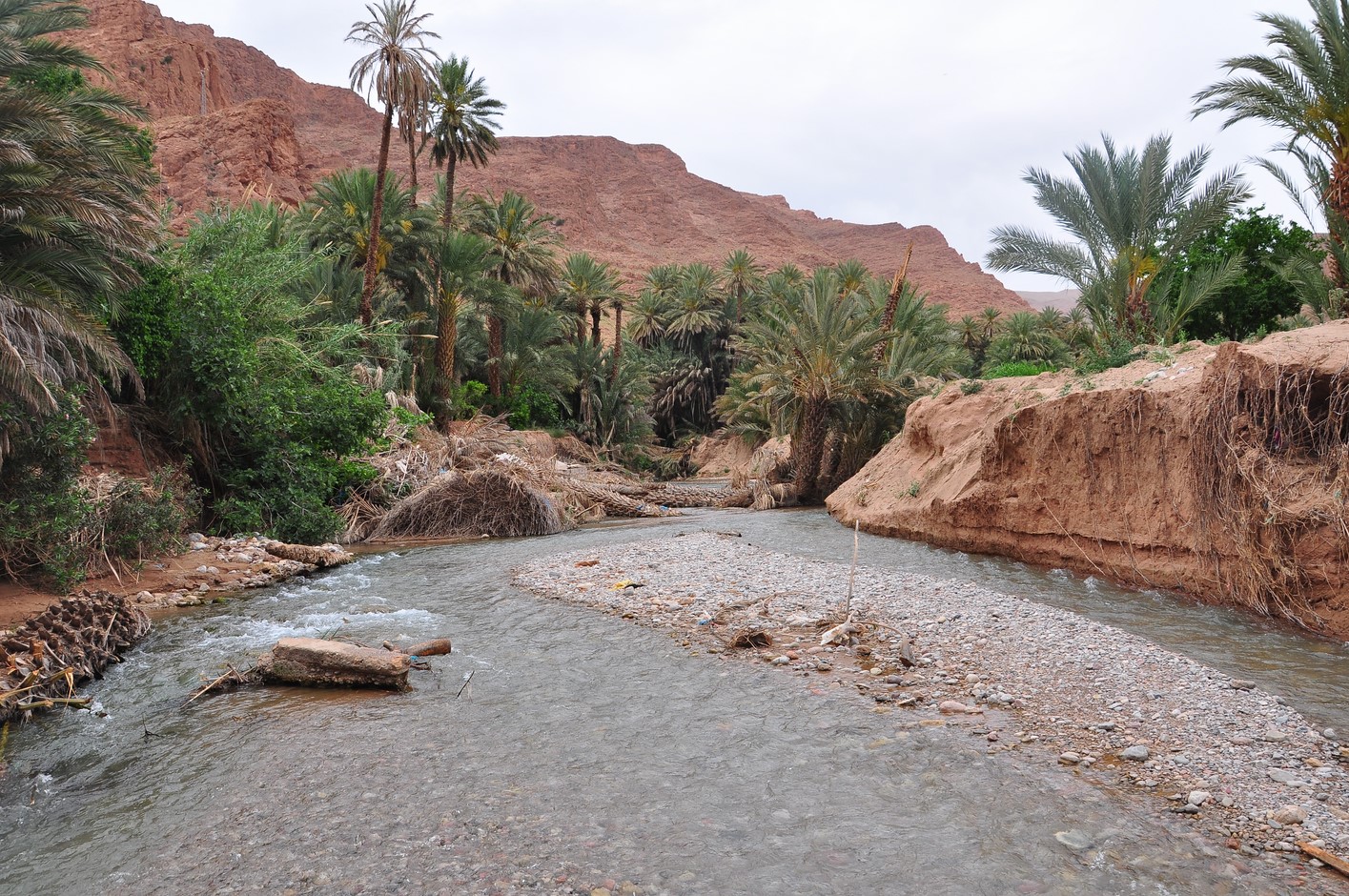 On découvre la vallée de la todra mais le cours d’eau est à sec assez rapidement donc nous faisons demi-tour pour aller visiter la palmeraie.