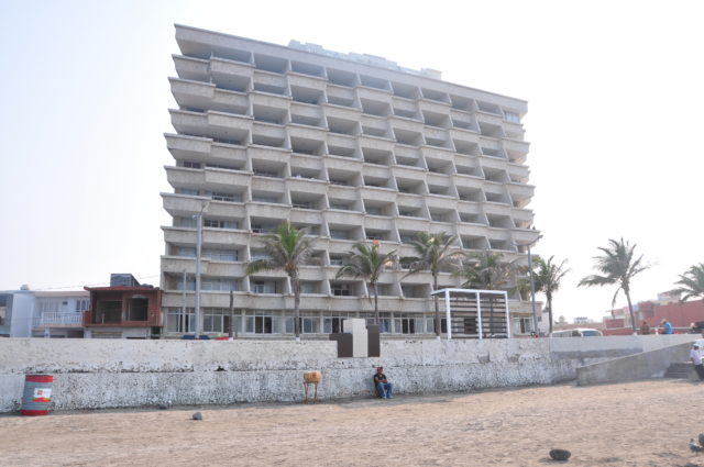 Comme le retour direct à Mexico est trop long nous avons élu Vera Cruz comme ville-halte, plus que par son joli nom que par une vraie connaissance de la ville. D’ailleurs nous apprendrons plus tard que la guerre avec les narcos a provoqué la découverte de 6-7 cadavres dans le port de Vera Cruz à la période à laquelle nous y étions.