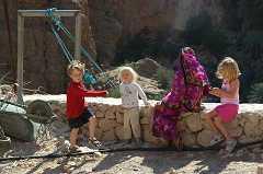 Après quelques rires et observations, les enfants nous laisserons tranquilles, pendant que les « sages » nous inviterons au café sur la place du village.