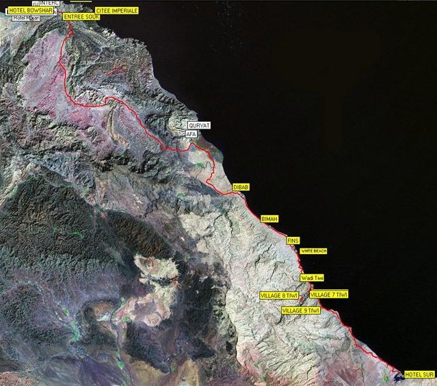On laisse le Wadi Tiwi et on suit les villages côtiers pour rejoindre la plage « White Beach » 22.923418N 59.211877E