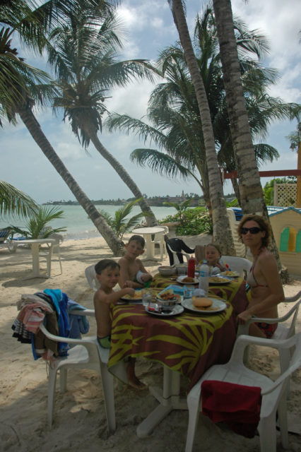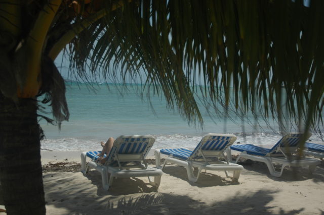 A peine 1h 30 de vol puis taxi pour le Cocoplum Beach Hotel où nous avions réservé 3 nuits. Le court transfert rappelle Mayotte (climat, population, rues, habitations, végétation, couleurs), le dépaysement à l’arrivée est total : l’hôtel se trouve au centre de l’île sur la côte Est, avec accès à une plage tranquille, belle et bordée de palmiers.