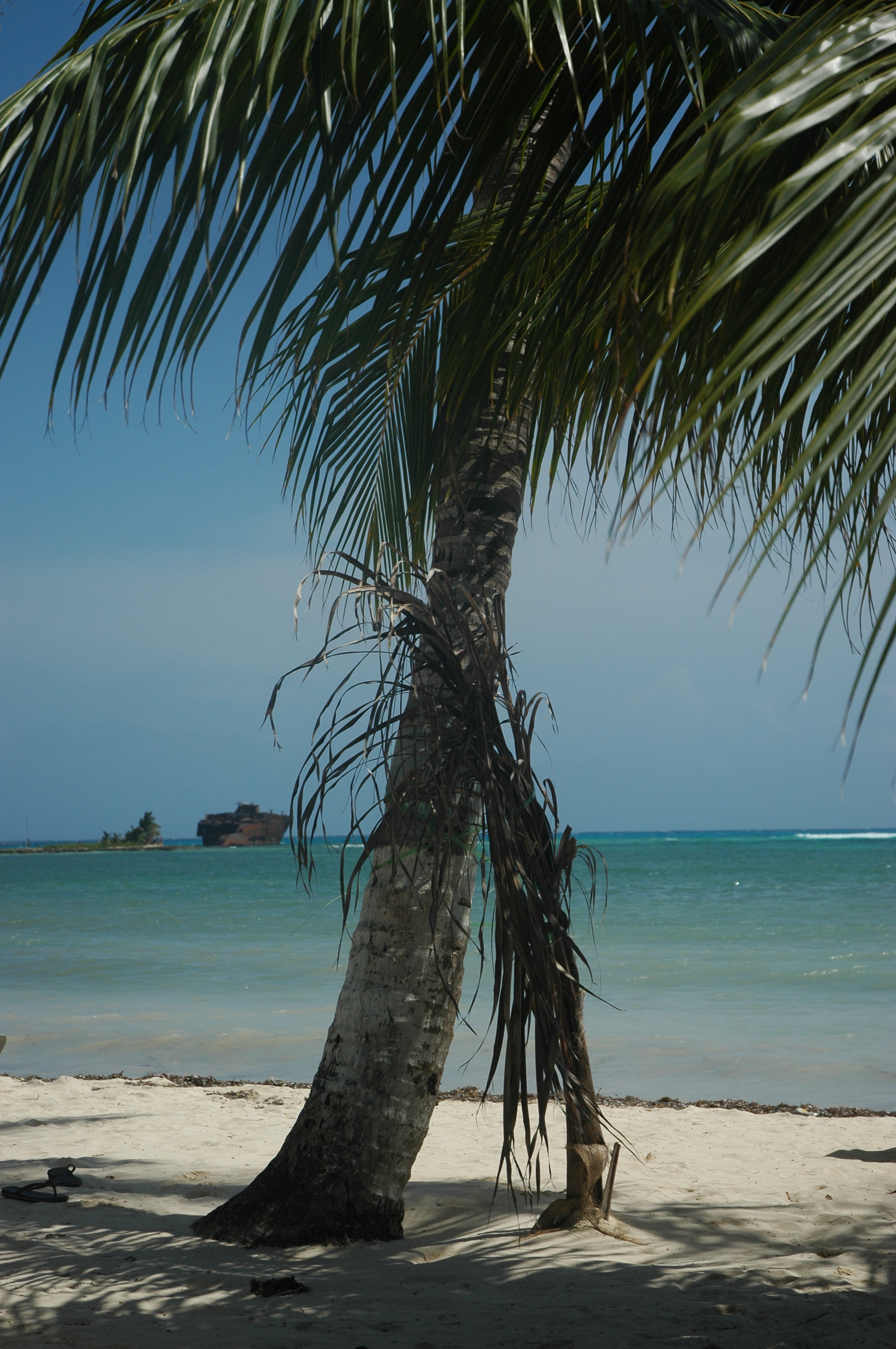 En face une petite île sur laquelle s’est échoué un cargo (dont il ne reste plus que la moitié …) de l’armateur grec Onassis